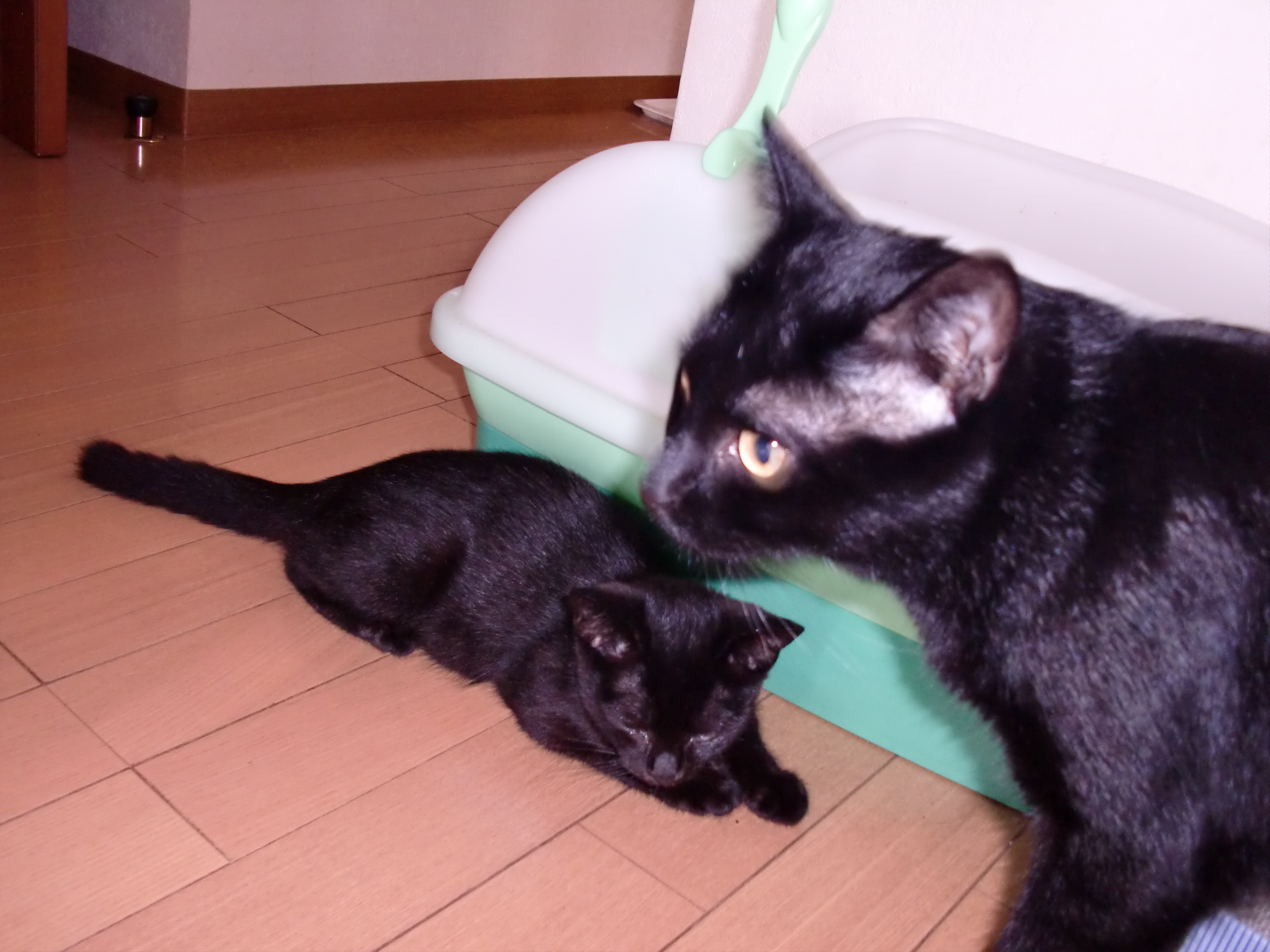 先日拾った黒猫の子猫、名前は「うらら」ちゃんです(女の子)お腹も治って、家にも慣れて元気になりました。まだまだノラの名残で目つきが悪いけど・・・先住のお兄ちゃん猫、Toshiくんともちょっと仲良くなりました。