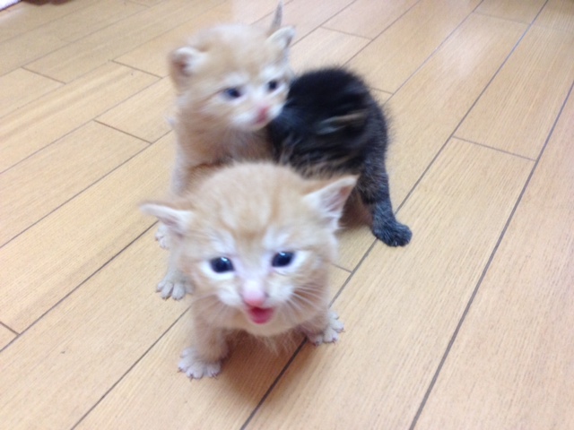 黒い子(黒子ちゃん)女の子 茶虎の子2匹(天ちゃん、優ちゃん)男の子です。