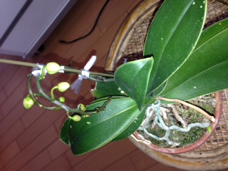 今年の胡蝶蘭、第一号が咲きました。