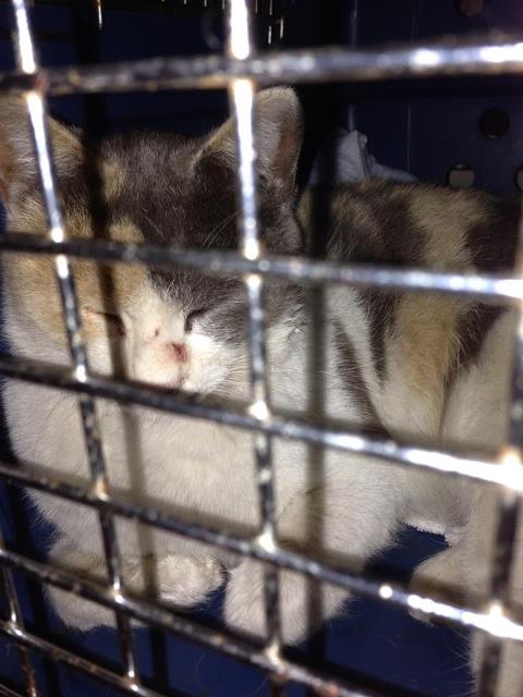 捕獲時のケージ画像とは別猫です。