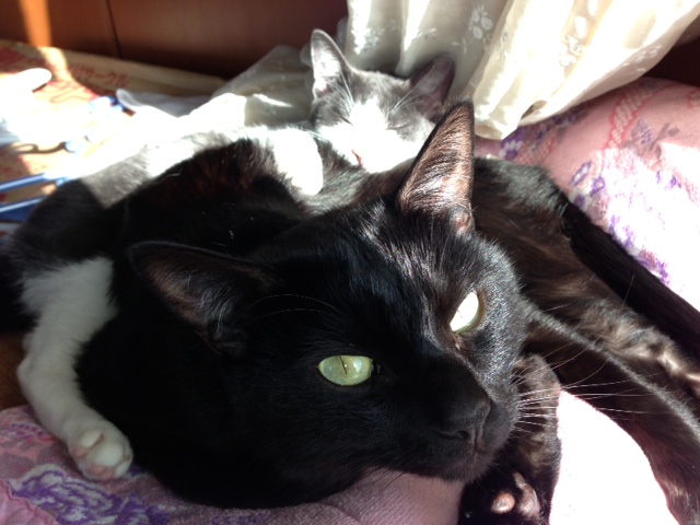 asamiさま♪コメントありがとうございます♪チョイ悪顔の黒猫は長男のtoshiですよ、toshiの後ろにくっついて寝ているのナンナです(笑)toshiの名前の由来は次回の脱毛の時に聞いてくださいね☆