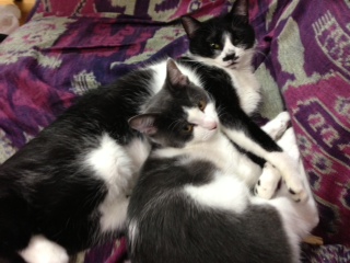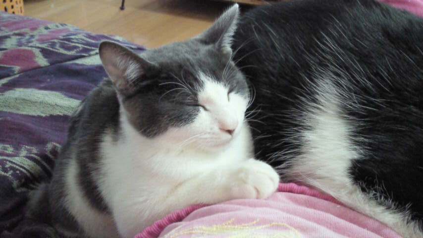 フィガロも先に自分が寝ているところに他の猫ちゃんが来ると、不機嫌になり両手で頭を持って頭突きをお見舞いするんですが(いや、ホントに)ナンナちゃんだけは特別扱いです。